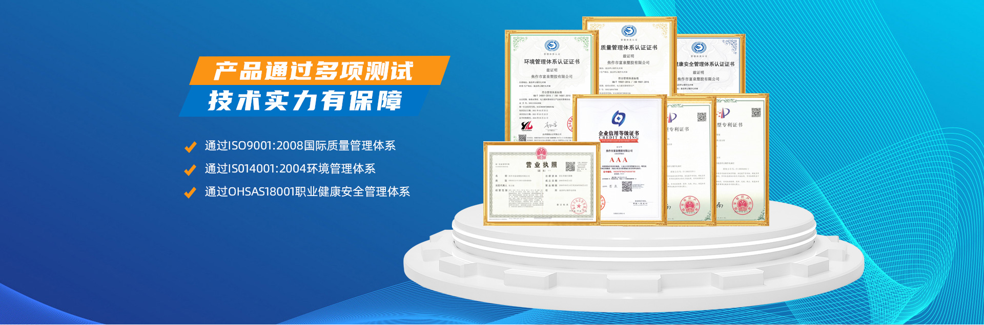 - 焦作市富泉塑膠有限公司,創(chuàng)立于1995年,是一家集研發(fā)、設計、生產(chǎn)、銷售為一體的大型管材企業(yè)。公司位于太極故里、黃河之濱一一河南焦作溫縣。公司占地128畝,現(xiàn)有職工210余人,其中具有中技術(shù)職稱的19人。生產(chǎn)、檢驗設備58臺(套),包括PVC實壁管生產(chǎn)線11套、PE實壁管生產(chǎn)線12套、HDPE雙壁波紋管生產(chǎn)線6套、PVC雙壁波紋管生產(chǎn)線5套,檢驗設備14臺(套)。主要產(chǎn)品有:Φ20mm-630mm、各種壓力規(guī)格的PVCU、PVC-M、PE給水管材,PVC-U節(jié)水灌溉管材,HDPE燃氣和礦用管材,DN200-800mm的HDPE、PVC雙壁波紋管及各種噴灌、滴灌工程材料。承接大中型市政供排水、飲水安全及節(jié)水灌溉等工程?! 「蝗苣z公司重視產(chǎn)品的質(zhì)量、安全、環(huán)保和節(jié)能,在同行業(yè)中率先完成了“新華節(jié)水產(chǎn)品認證”,全方面通過ISO9001:2008國際質(zhì)量管理體系、IS014001:2004環(huán)境管理體系和OHSAS18001職業(yè)健康安全管理體系的一體化導入,并建立起規(guī)范的現(xiàn)代企業(yè)管理體系。公司以“質(zhì)量”為先導,采用質(zhì)量跟蹤、多環(huán)節(jié)把關(guān)的方法,組建具有行業(yè)水準的企業(yè)技術(shù)檢測中心,常年委托水利部節(jié)水灌溉設備檢測中心、河南省產(chǎn)品質(zhì)量監(jiān)督檢驗院對產(chǎn)品跟蹤檢測,并由中國人民保險公司承保產(chǎn)品質(zhì)量。公司連續(xù)多年被河南省水利廳確定為“安全飲水設備、節(jié)水灌溉設備”定點生產(chǎn)企業(yè),并獲得“中國名優(yōu)產(chǎn)品”“質(zhì)量、服務、信譽AAA企業(yè)”“河南省**產(chǎn)品”“河南省水利企業(yè)”“河南省守合同、重信用企業(yè)”等榮譽稱號?! 「蝗苣z公司堅持“用戶為上”的服務理念,長期以來,全方面關(guān)注客戶價值,不斷提升服務水平。服務隊伍常年為客戶的產(chǎn)品設計、施工、安裝提供合理的方案和全程細致、周到、**、快捷的技術(shù)服務。公司自成立以來,一直堅持以人為本的宗旨,塑造企業(yè)形象,并致力于新產(chǎn)品的開發(fā),憑借雄厚的技術(shù)開發(fā)能力,先進的工藝制造流程,嚴格的質(zhì)量管理保證體系,優(yōu)良的售后服務網(wǎng)絡,已成為河南省大的飲水、灌溉及排水管材設備制造商。產(chǎn)品暢銷全國,而且還以公司雄厚的綜合實力在業(yè)界中占據(jù)著重要的地位。